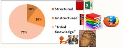 My conservative estimate of the percentages of structured, unstructured and tribal knowledge is 10%, 20% and 70%.